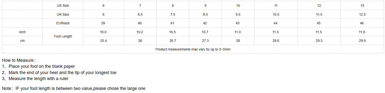 EUR Size | US Size | Insole Length(inch) | Insole Length(mm) |